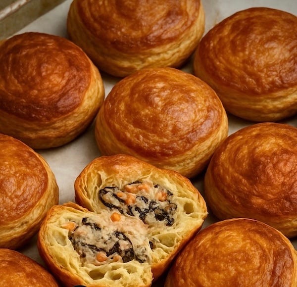 So, I’m going to share what I’ve found out about pâté chaud in this dispatch plus where to buy them. In a couple weeks, when we’re back from vacation and I’ve had a chance to do another round of testing, I’ll share the recipes so you can make your own versions.