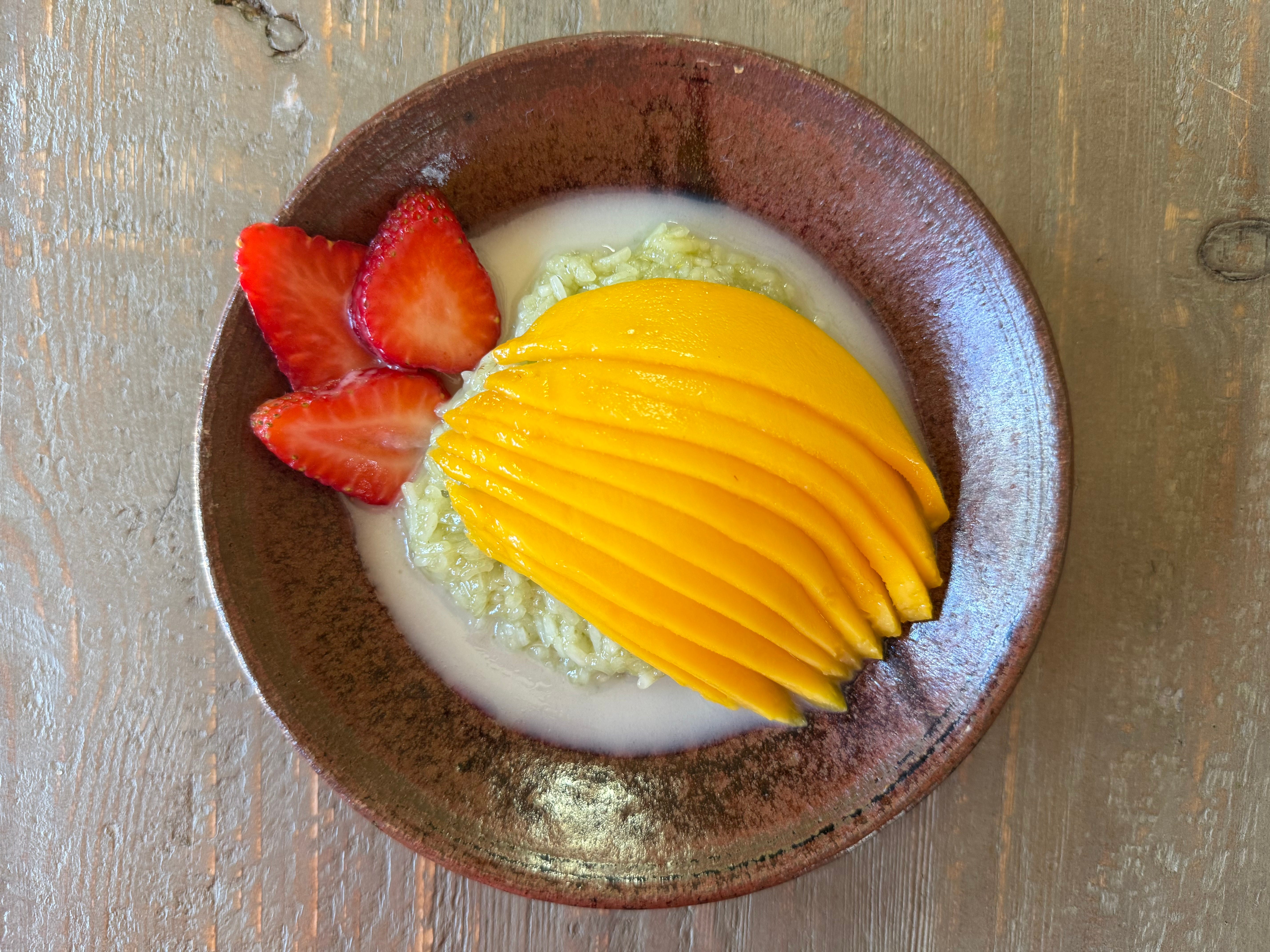 I rarely make iconic khao niew mamuang (the treat’s Thai name) because all the recipes I’ve read call for soaking the rice for hours or overnight, followed by a stovetop steaming process then dousing it with sweetened coconut milk. I wondered if I could apply a Viet pot method to successfully cook the coconut rice without soaking and without a steamer.